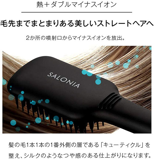 - 【時短】電熱線がブラシ1本1本についているので、とかすだけで髪全体に熱を与えられます。細かいブロッキングなしでナチュラルストレートヘアに整うので、時間のない朝にぴったりです。