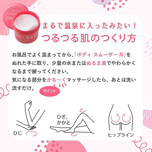 - やさしくマッサージするだけで、全身つるつる・すべすべのボディに導くマッサージペーストです。