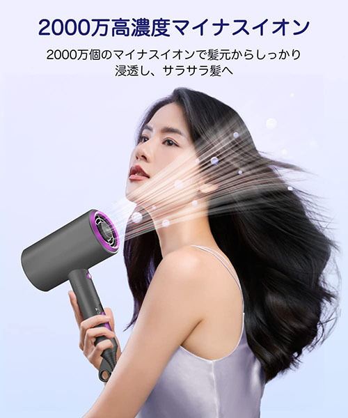 - 【髪質をアップした秘密❤高濃度マイナスイオン】高濃度のマイナスイオン装置が内蔵され、豊富な2000万イオンが放出させ、静電気の発生を最大限に抑え、髪に潤いを与えながら、乾燥した髪を改善します。